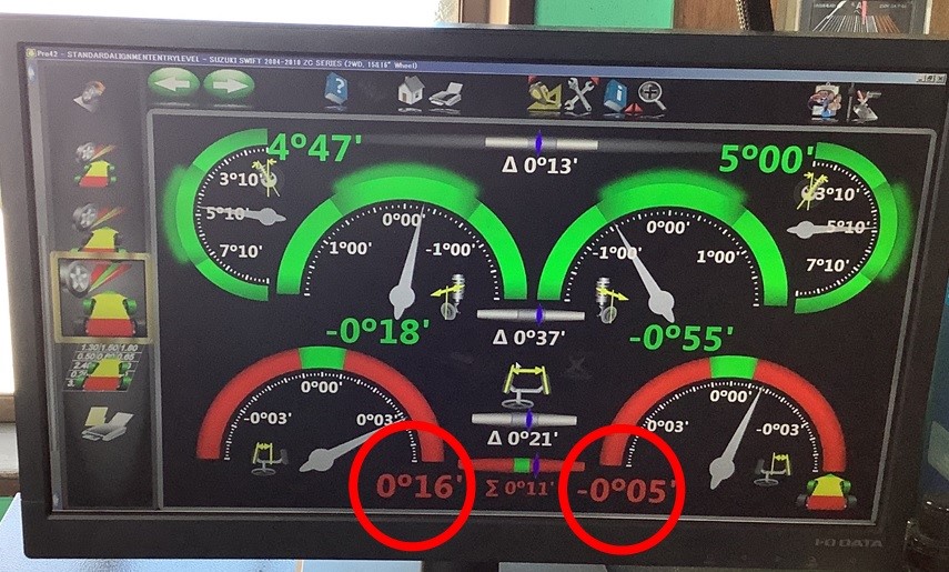 本日はスズキ・スイフトスポーツのアライメント測定&調整のご紹介です。