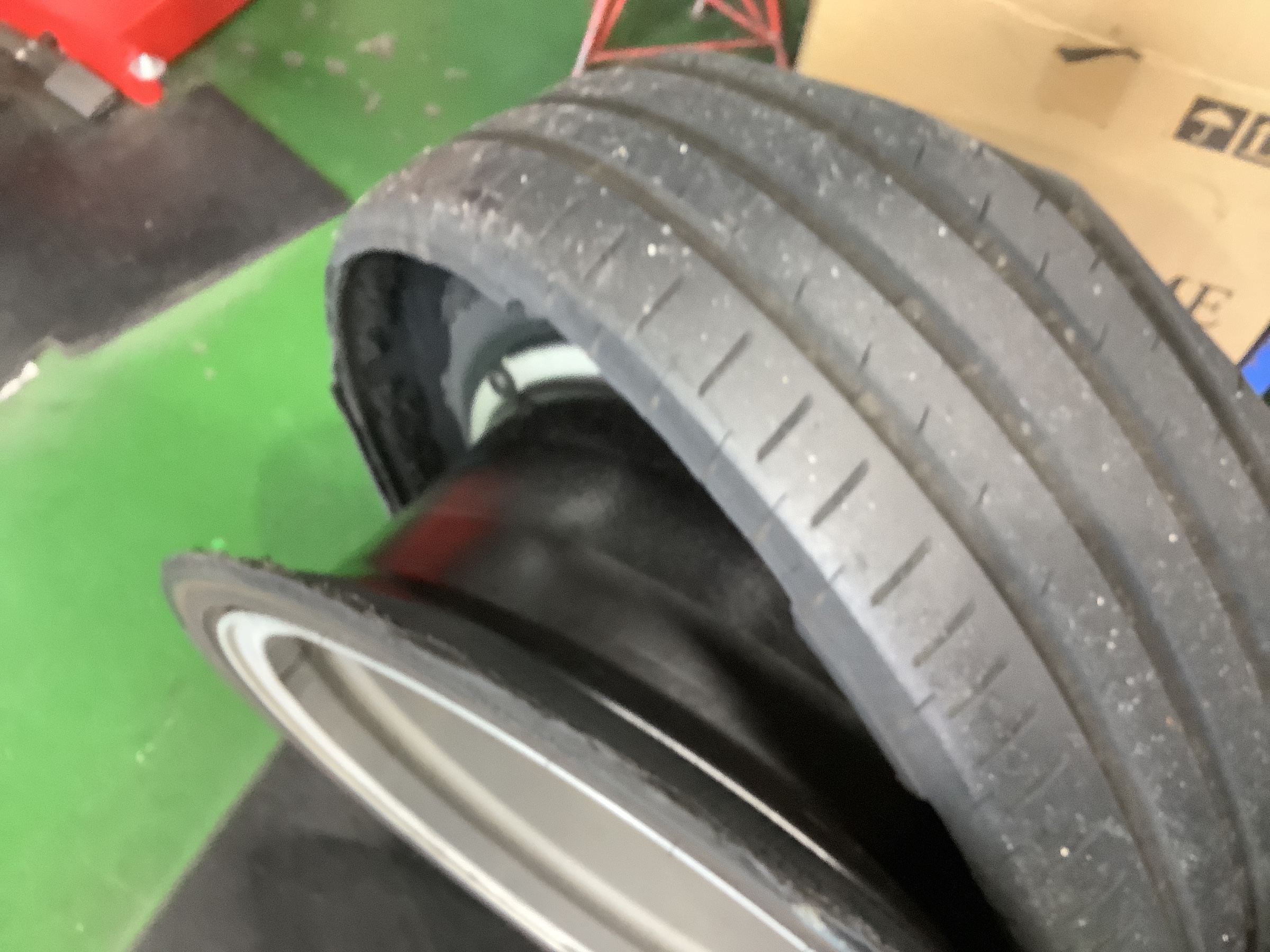新品タイヤを取り付け後は締め付けなど確認して作業終了になります。
