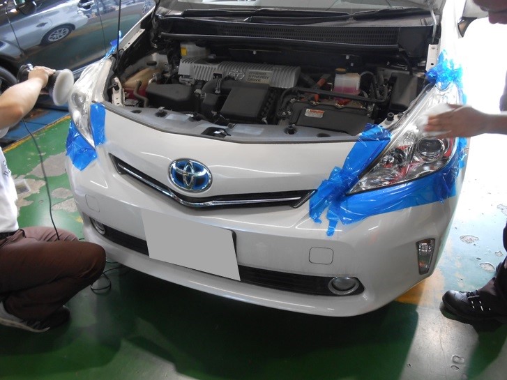 本日はトヨタ・プリウスαのヘッドライトクリーニング&コーティングのご紹介です。