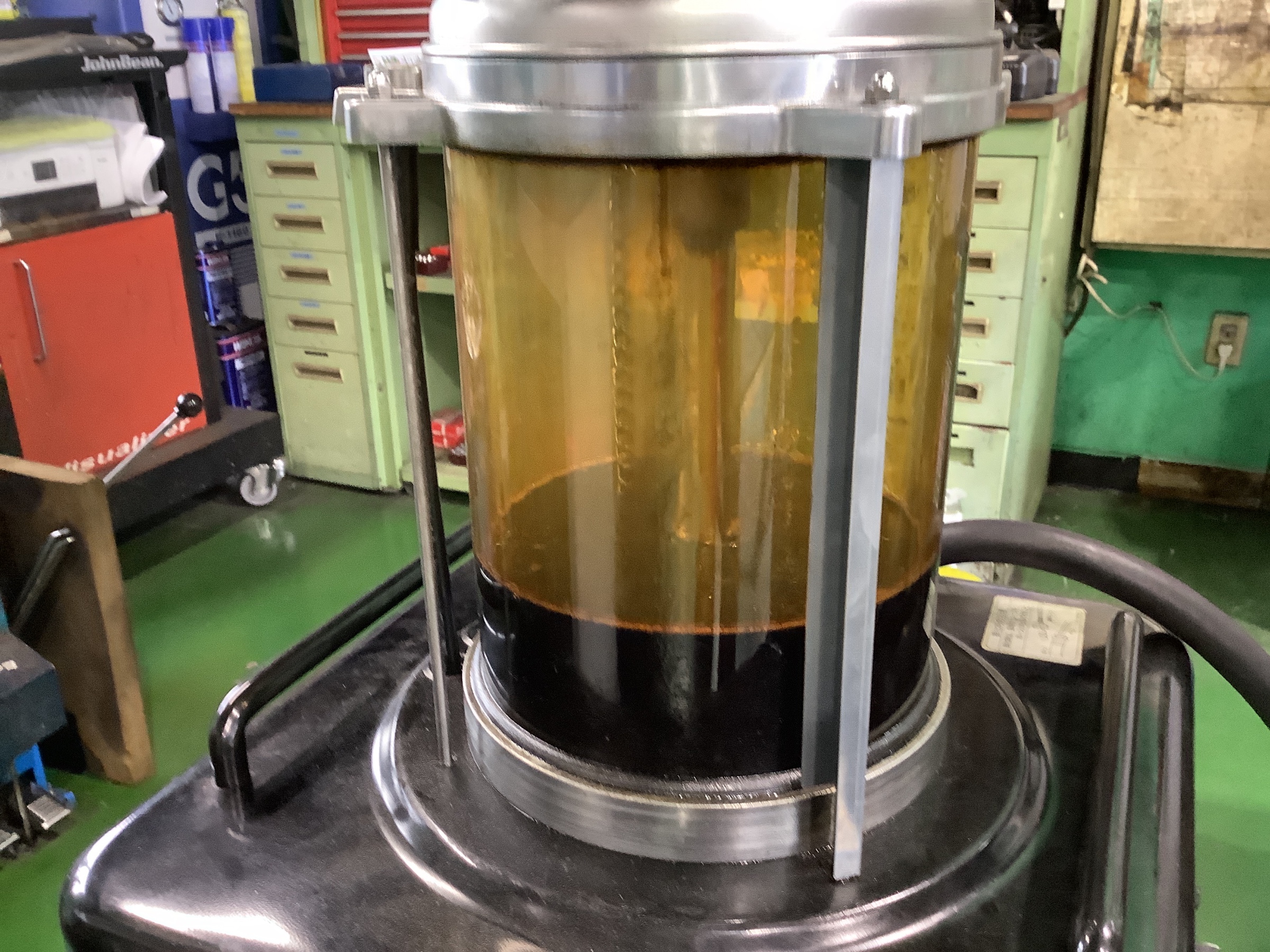 当店のエンジンオイル交換は専用の機械でオイルレベルゲージ部から上抜きします。