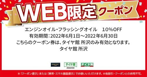 こちらのクーポン券は、タイヤ館 所沢のみ有効となります。