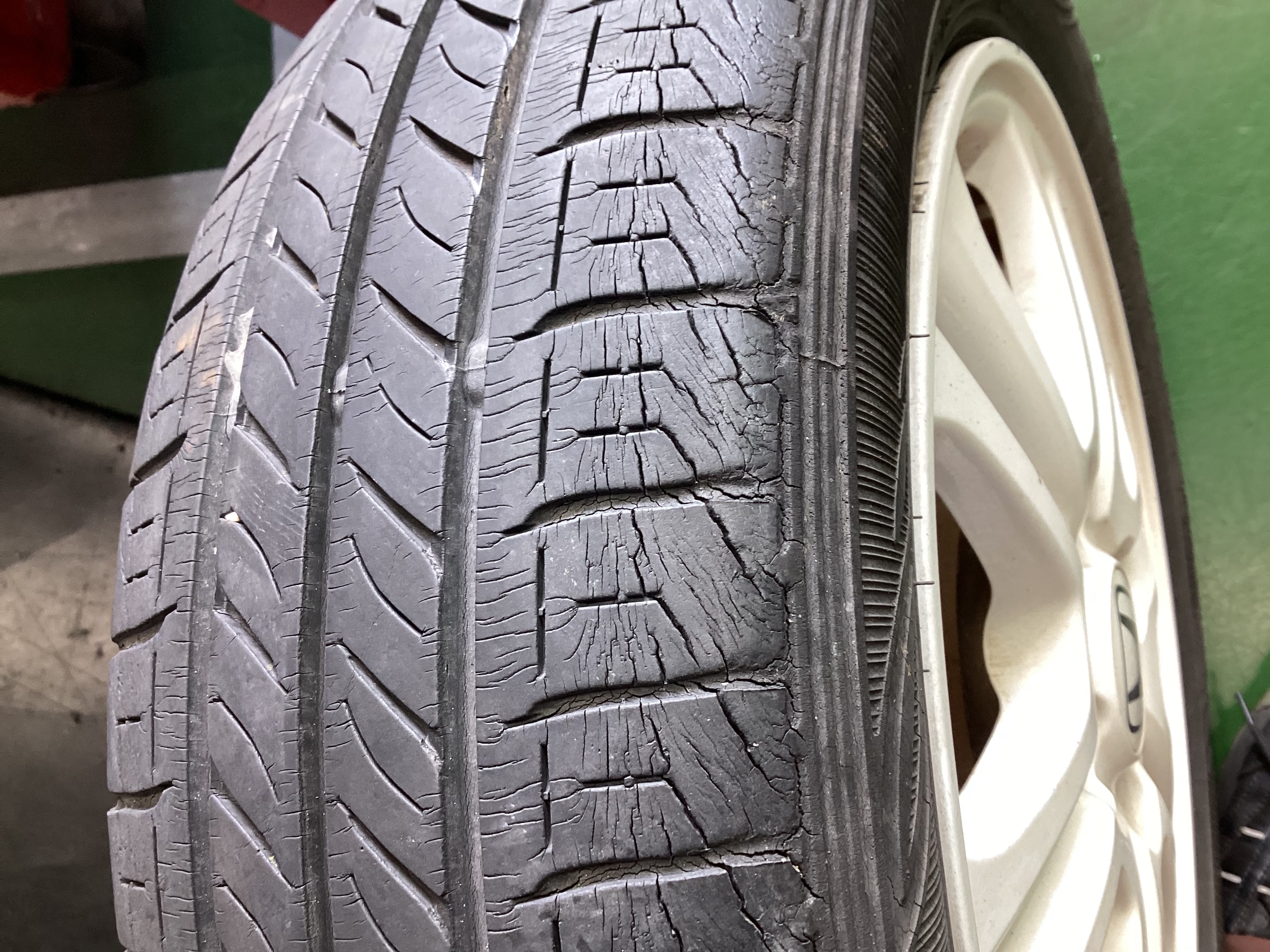 ↓使用年数が経ち、ヒビ割れなどタイヤが経年劣化してしまったため交換依頼をいただきました。↓