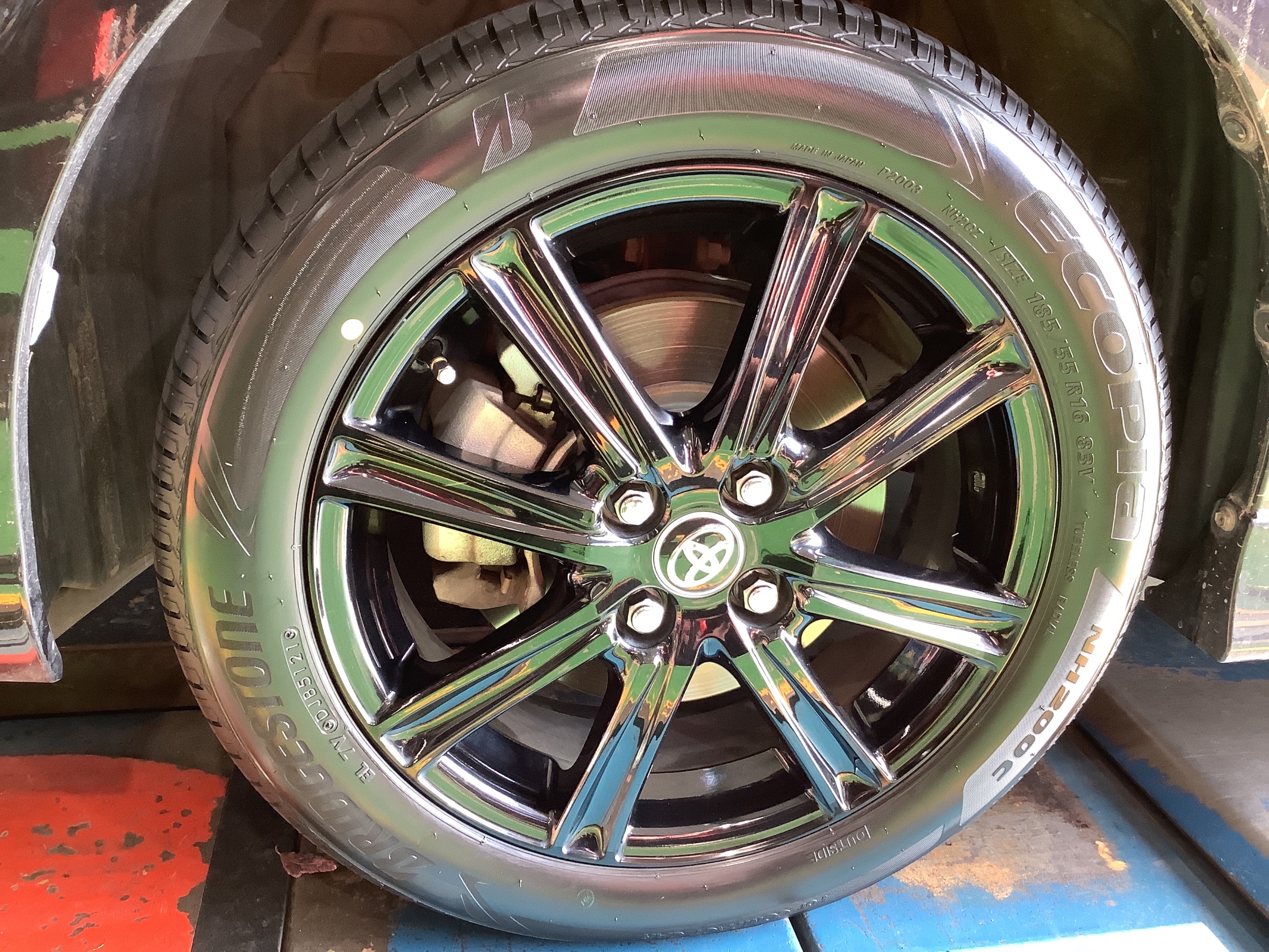 タイヤを新品タイヤに交換し、締め付けなど確認して作業終了になります。