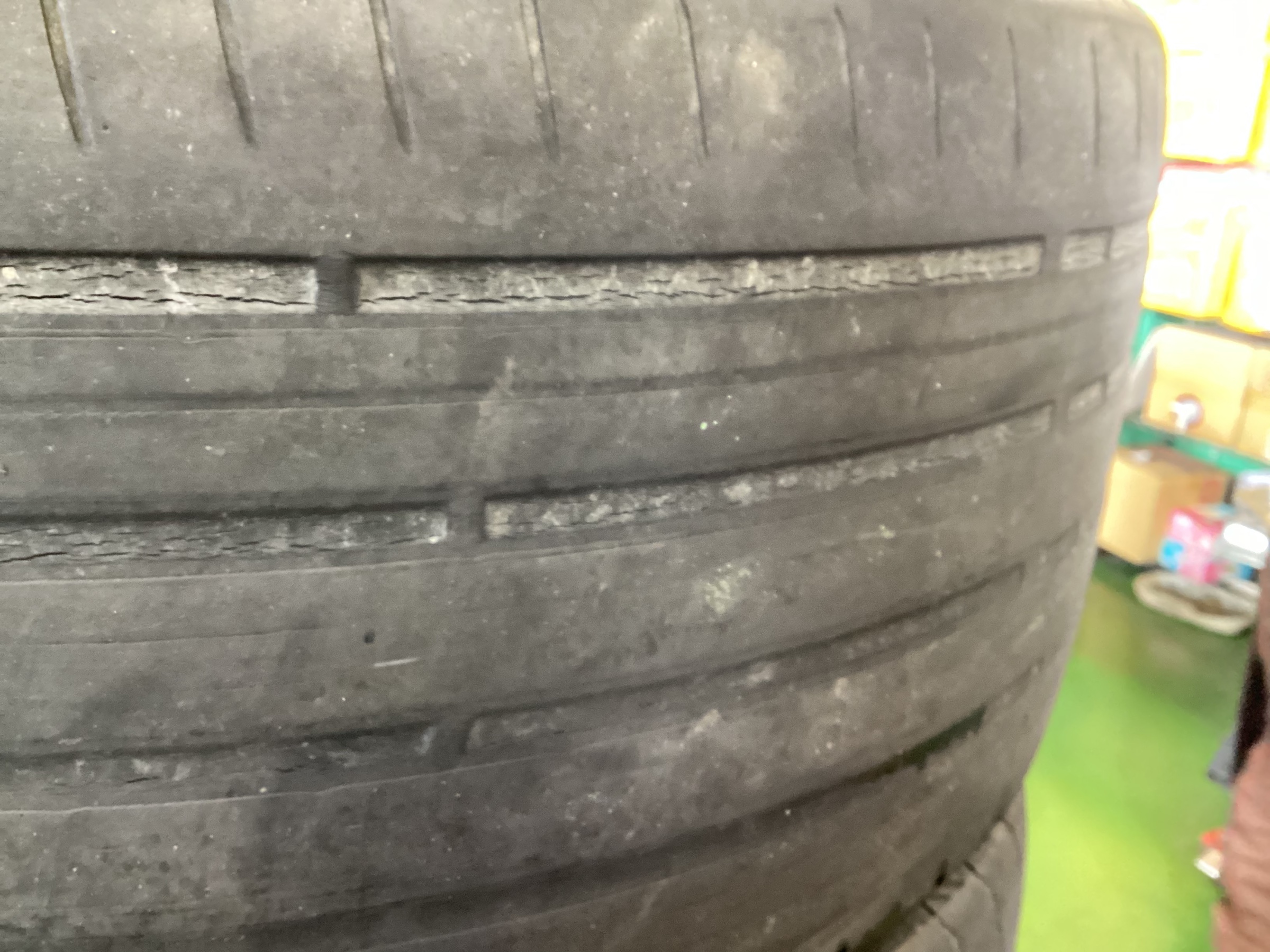 ↓残り溝が少なくなったのと、ヒビ割れなどの経年劣化が見られましたので