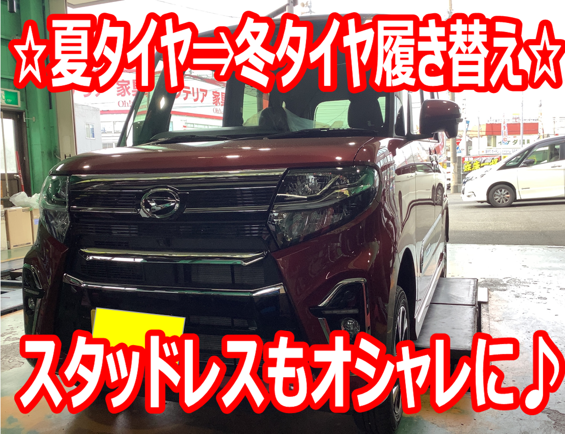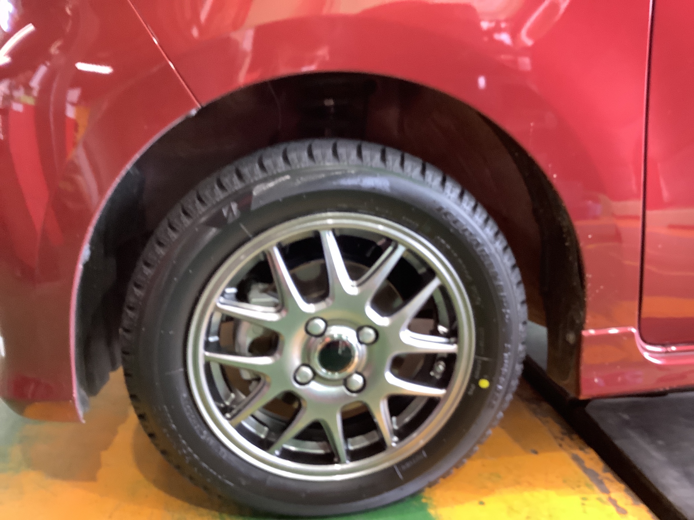 本日はダイハツ・タントのスタッドレスタイヤ、アルミホイールセットでの交換のご紹介です(^^)