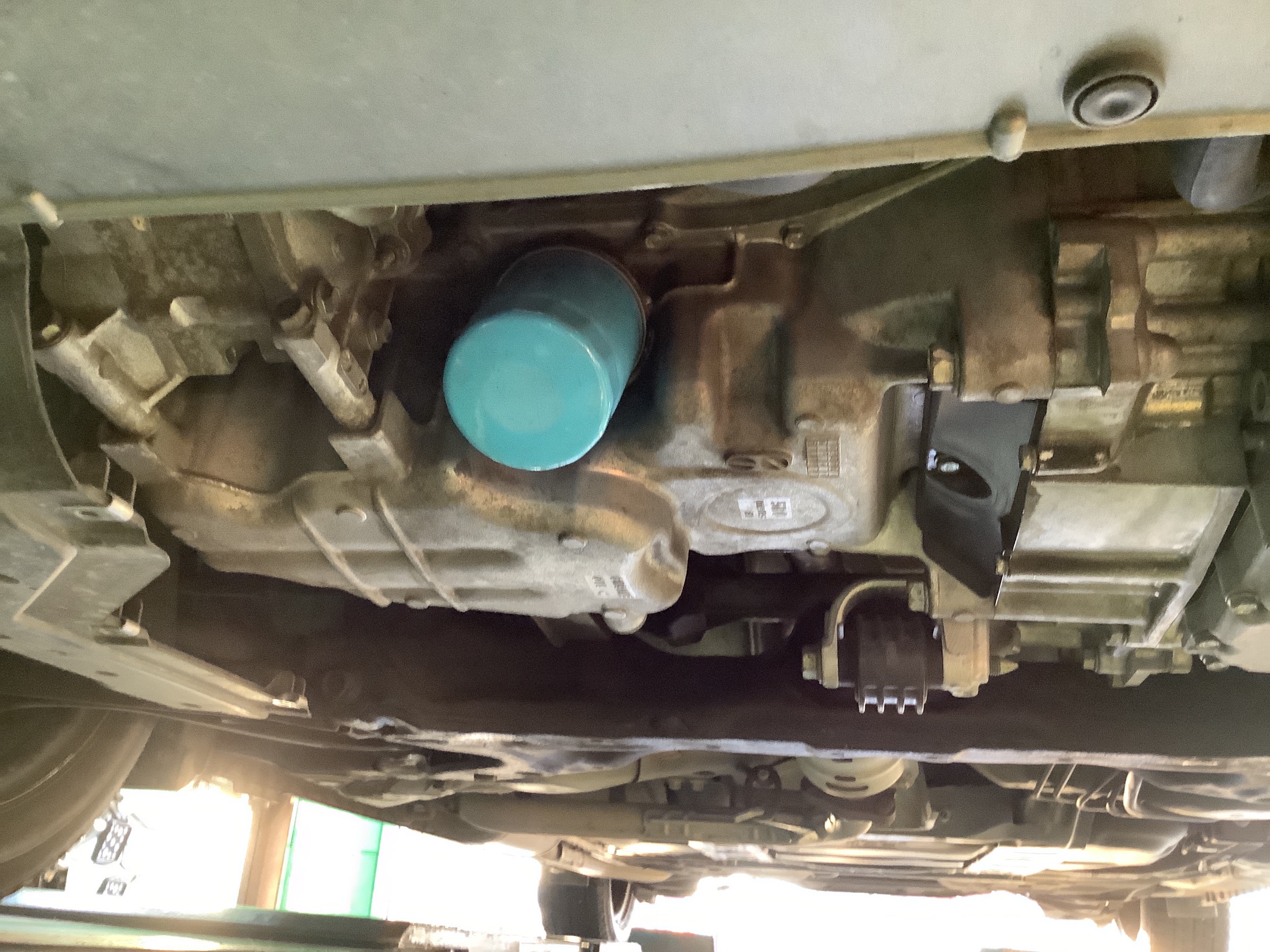 オイルエレメント(オイルフィルター)はエンジン下部にあります。