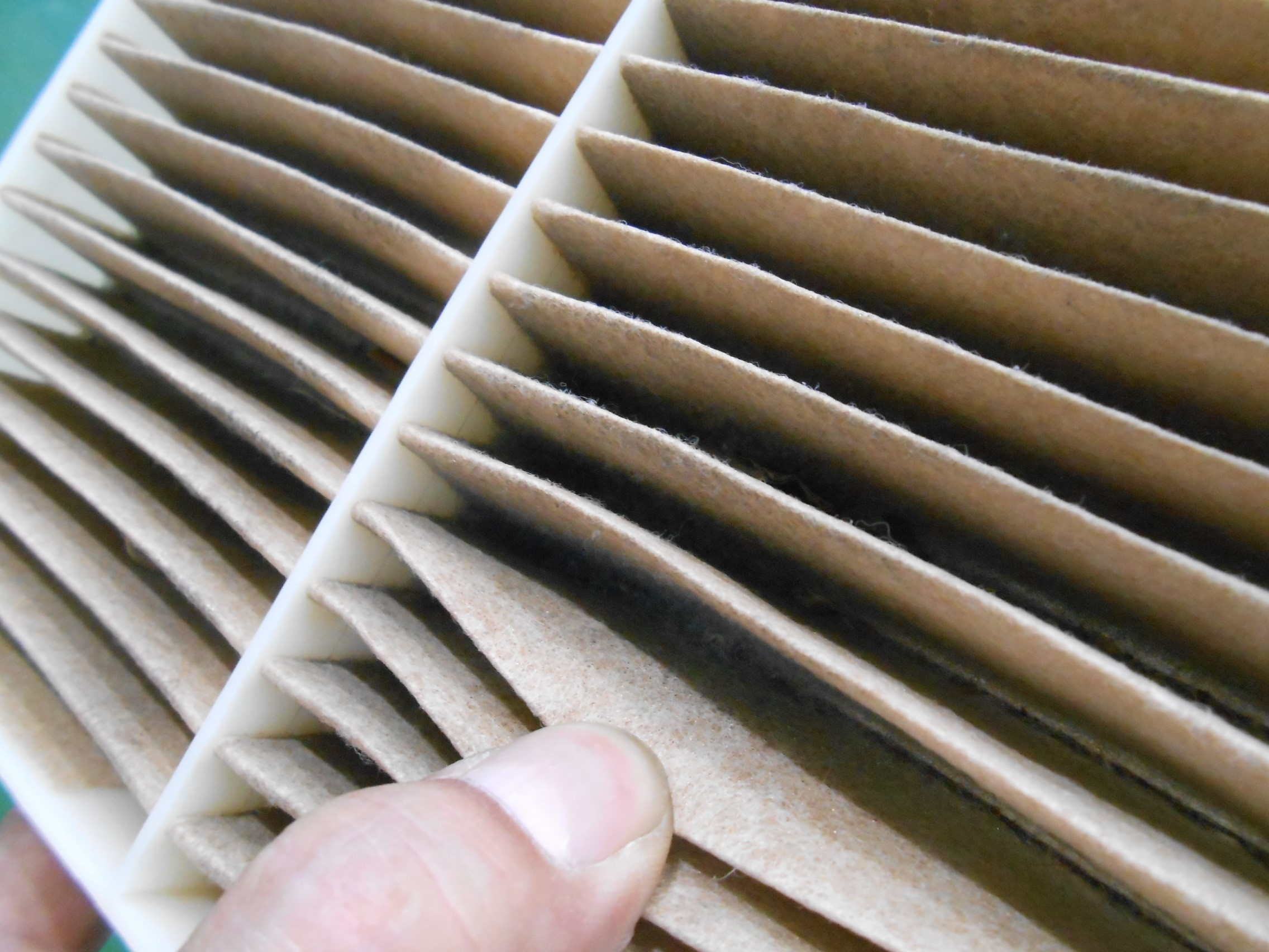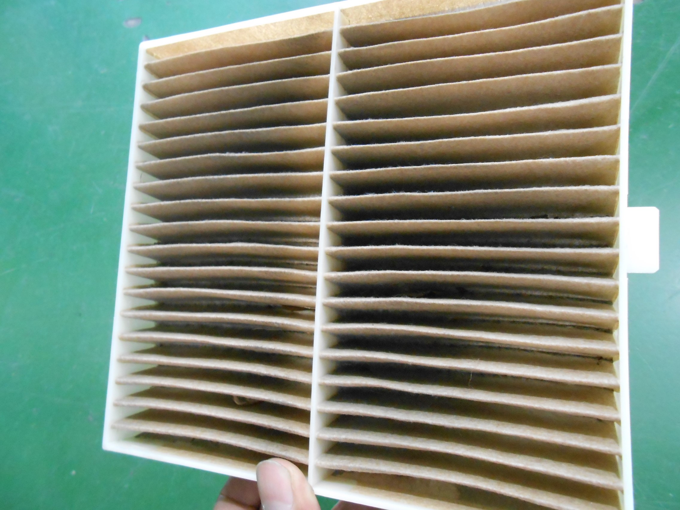 取り外したエアコンフィルターです。かなり汚れてしまっているのがわかるかと思います!(ノ_<)