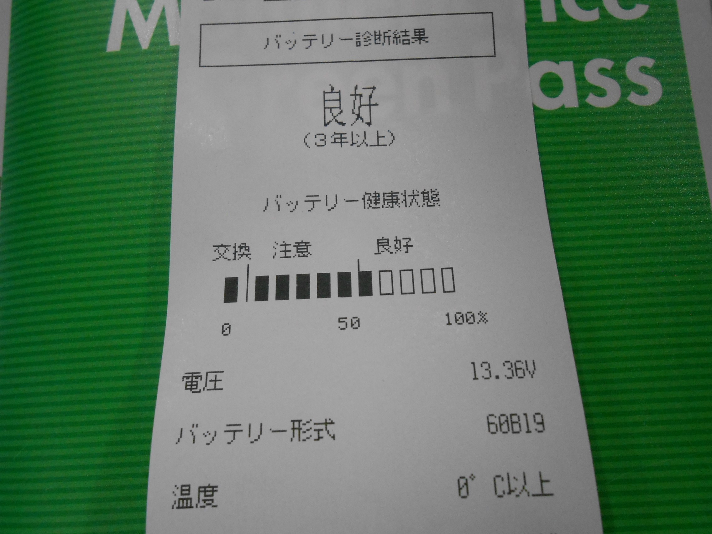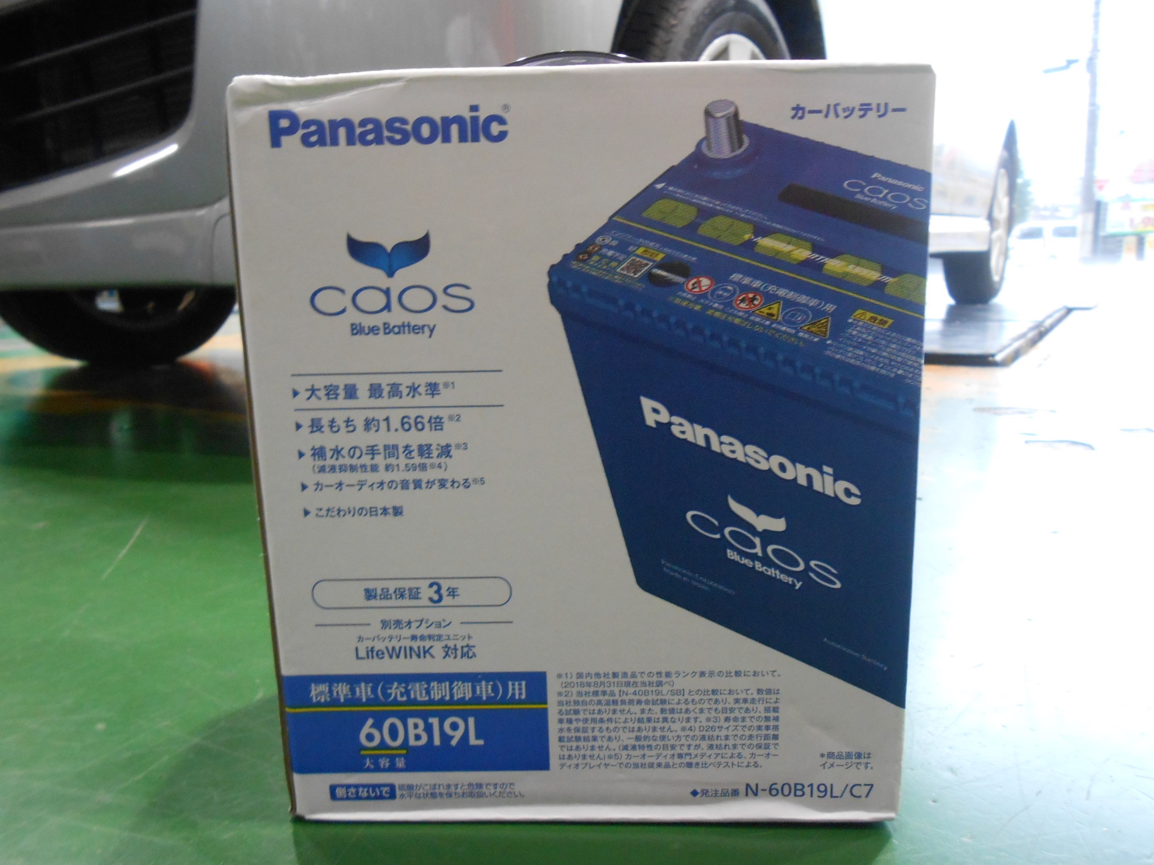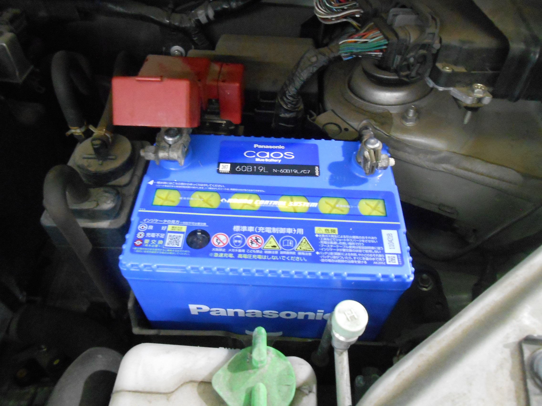 新しいバッテリーはパナソニックのCAOS(カオス)・C7の60B19Lをお選びいただきました!