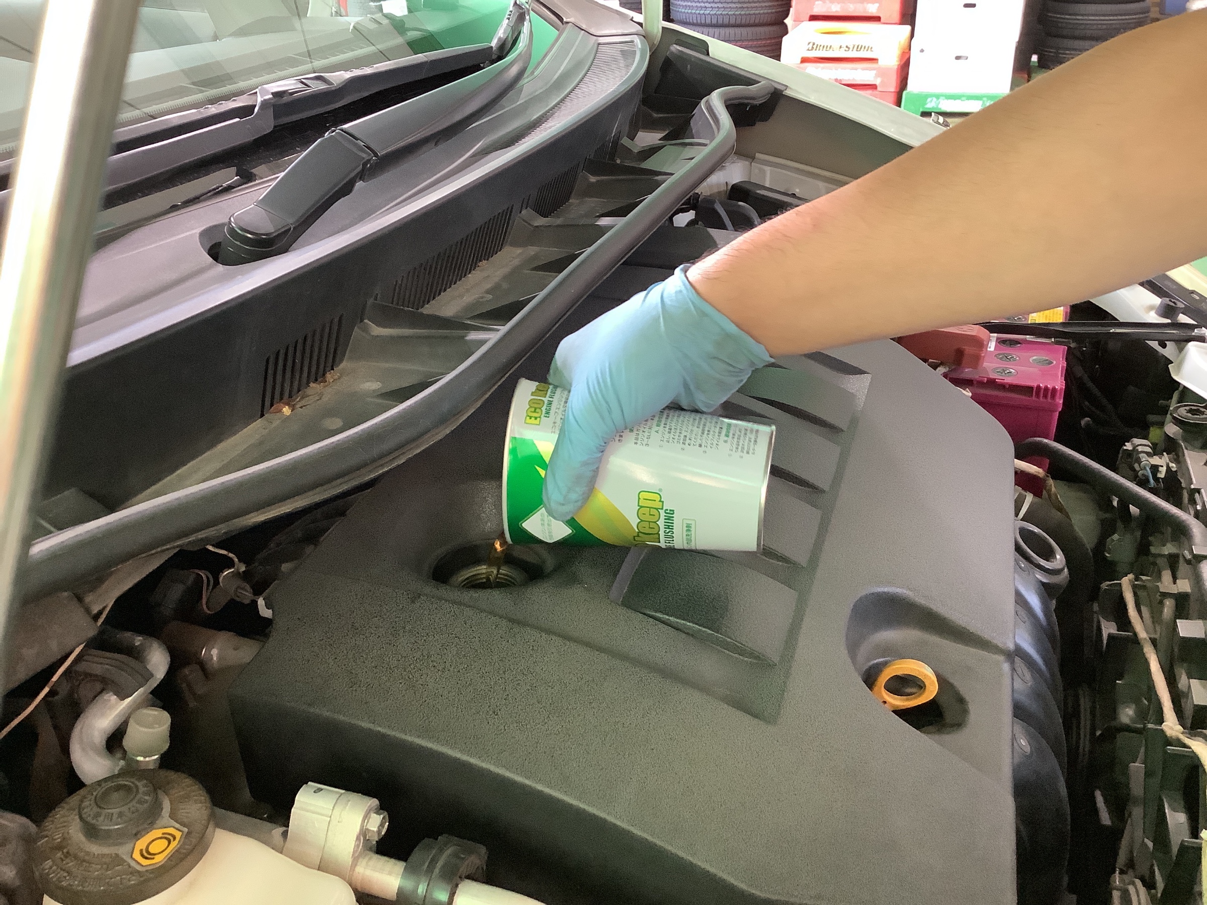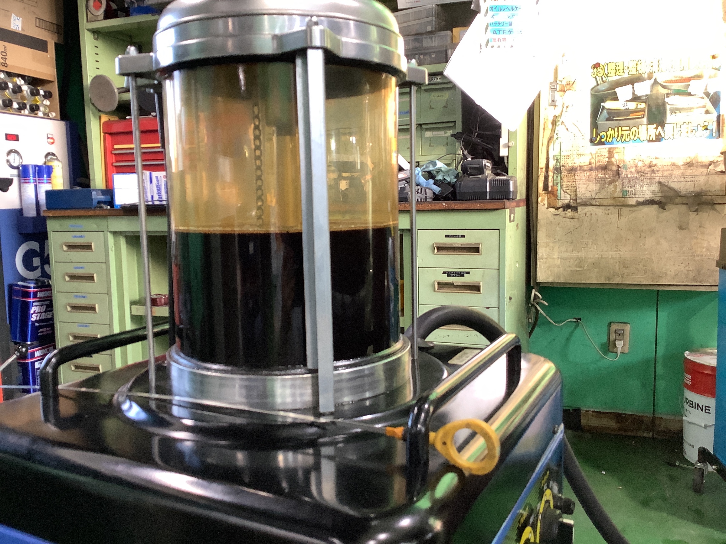 まず初めにフラッシングオイルを注入して、エンジンをかけてエンジン内部を洗浄していきます!