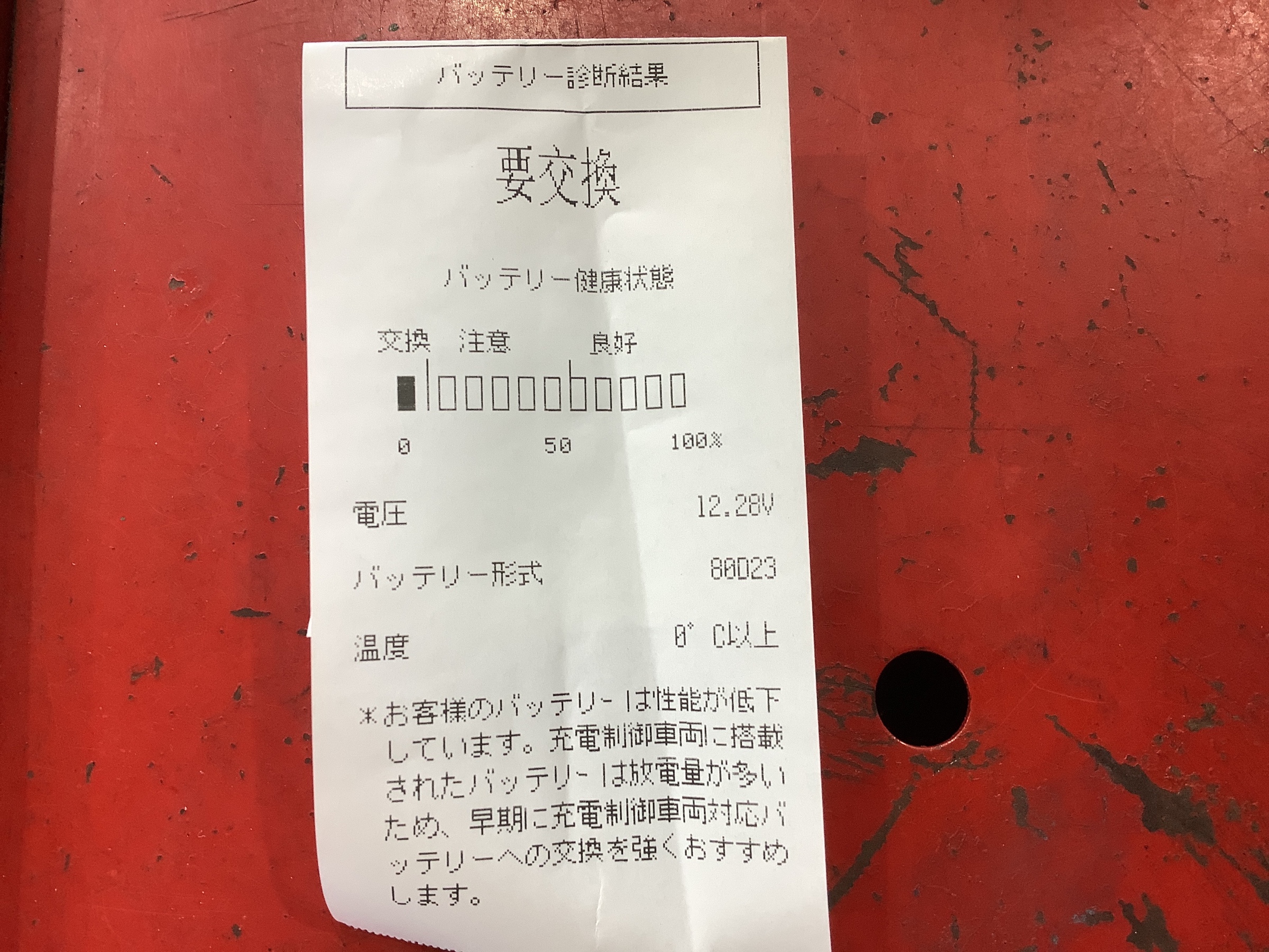 無料安全点検をさせていただいたらなんと、バッテリーが交換時期でした・・・。(;´・ω・)