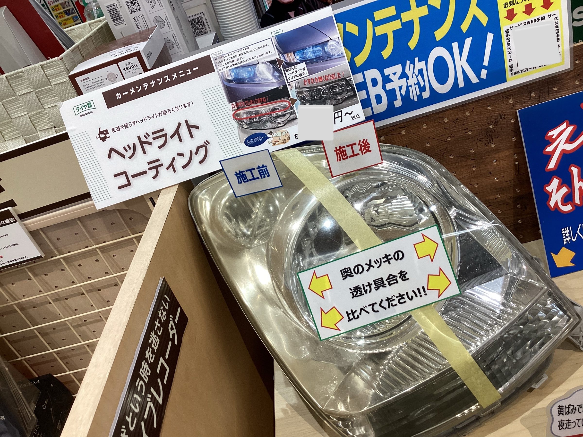 ヘッドライトコーティングはタイヤ館にお任せください!