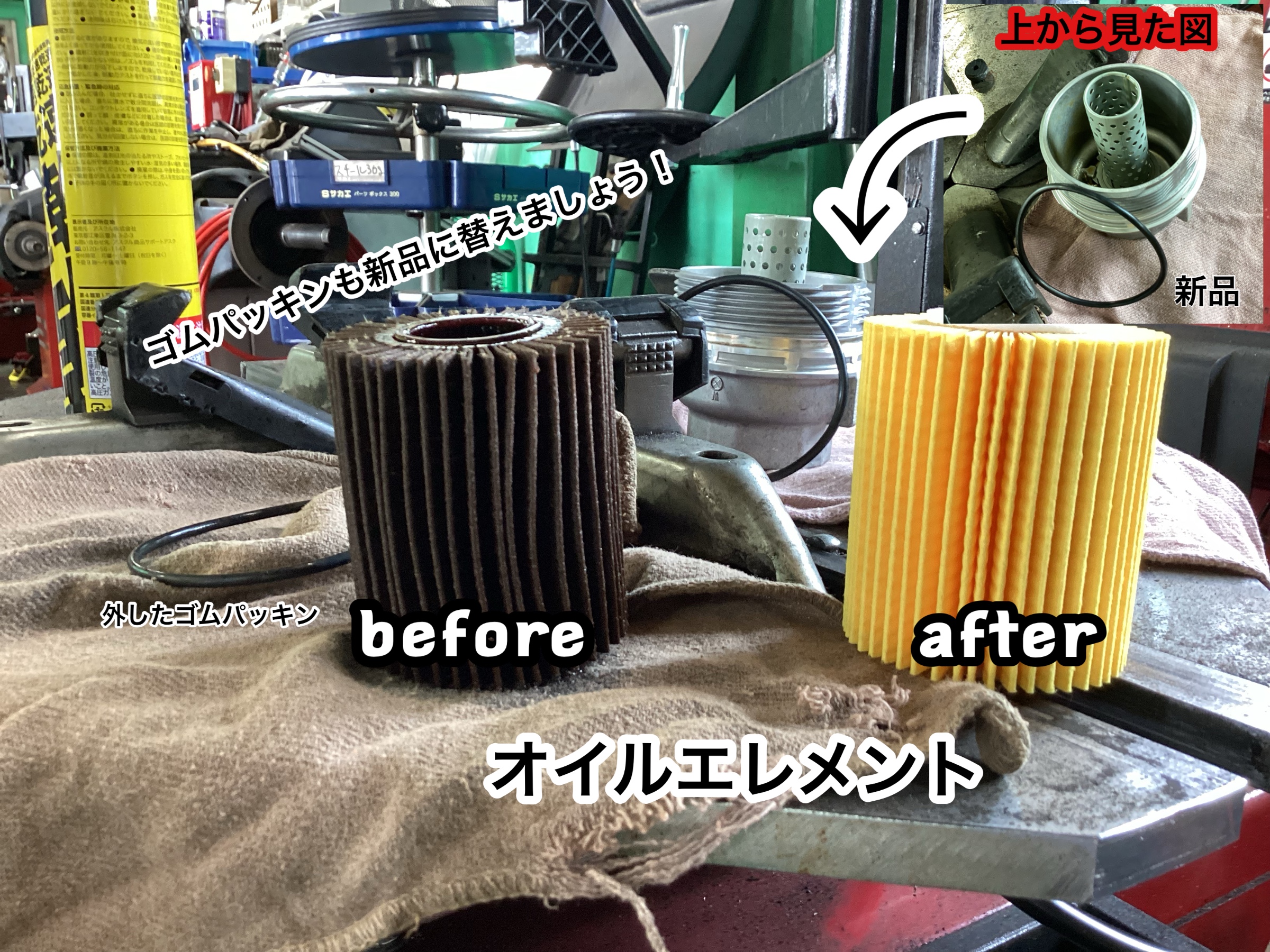 オイルエレメントはオイル内の鉄粉などを吸着してエンジン全体に送っています。