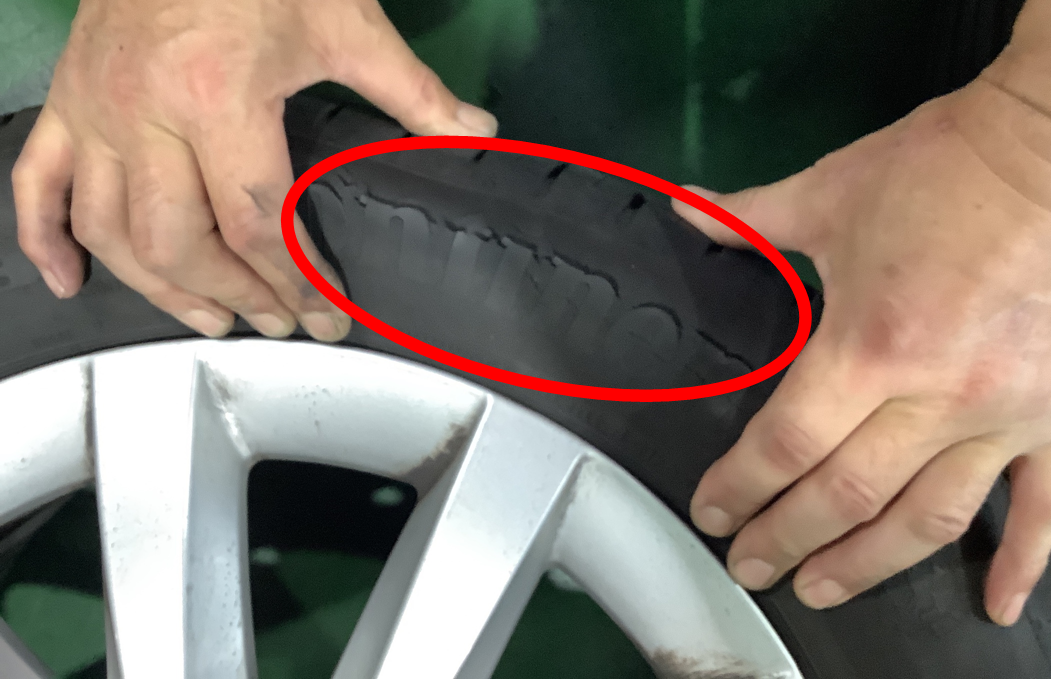 な な なんと・・・タイヤが裂けてしまいました(;゚Д゚)