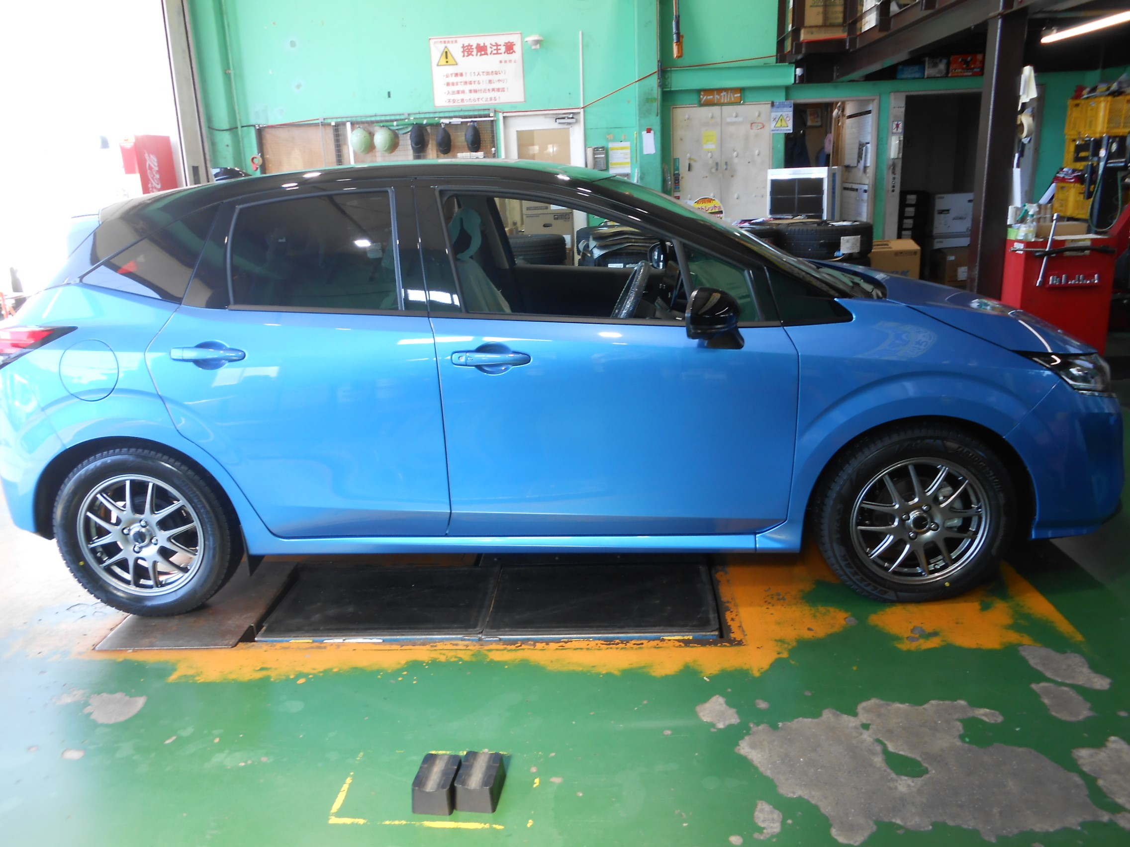 本日は日産・ノート(E13)のスタッドレスタイヤ&アルミホイールセット取付の紹介です!