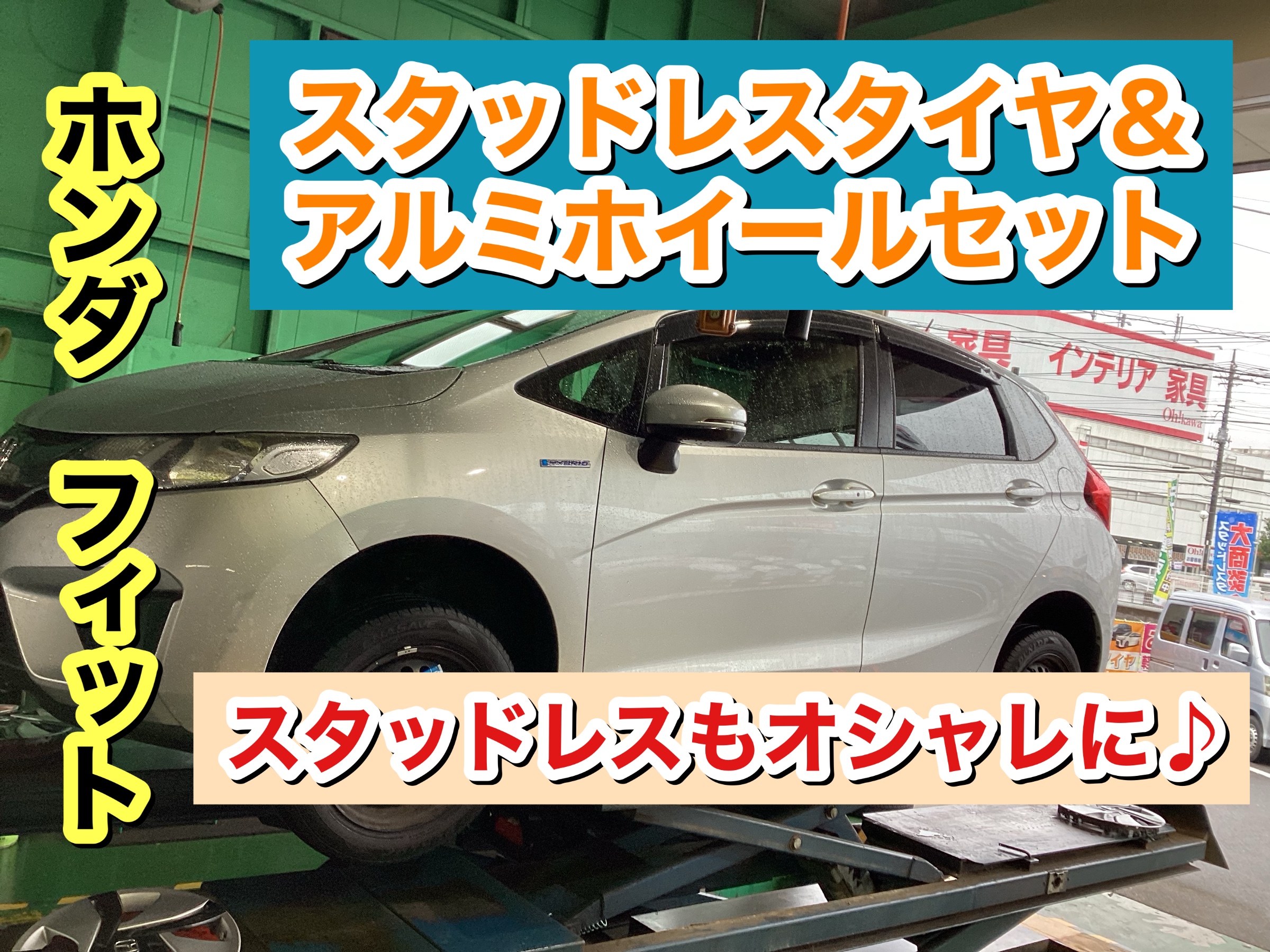 本日はホンダ・フィットのスタッドレスタイヤ、アルミホイールセットでの交換のご紹介です(^^)♪