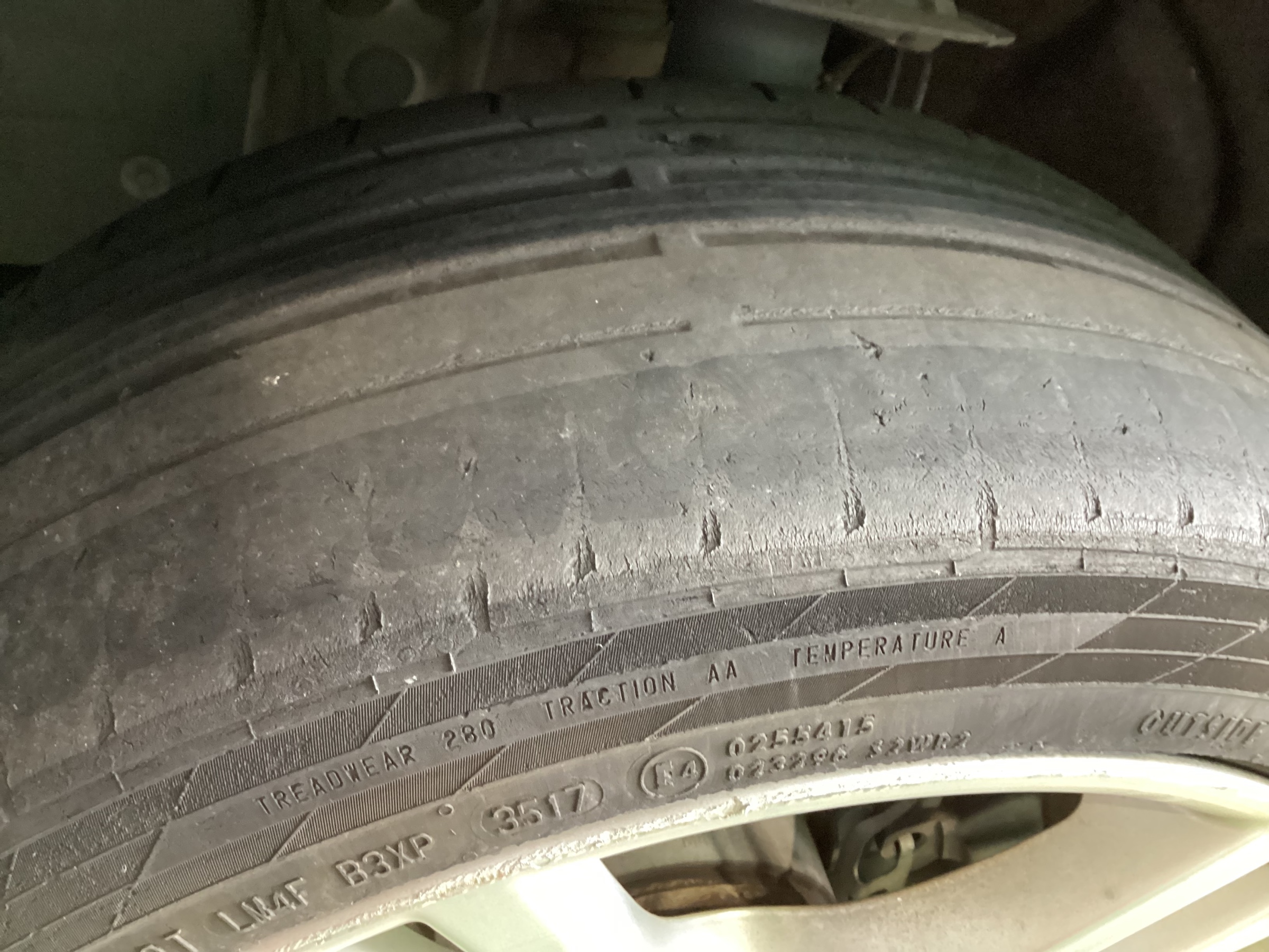 ↓溝が少なくなってくると雨の日の制動距離が伸びていってしまいます(>_<)。。。