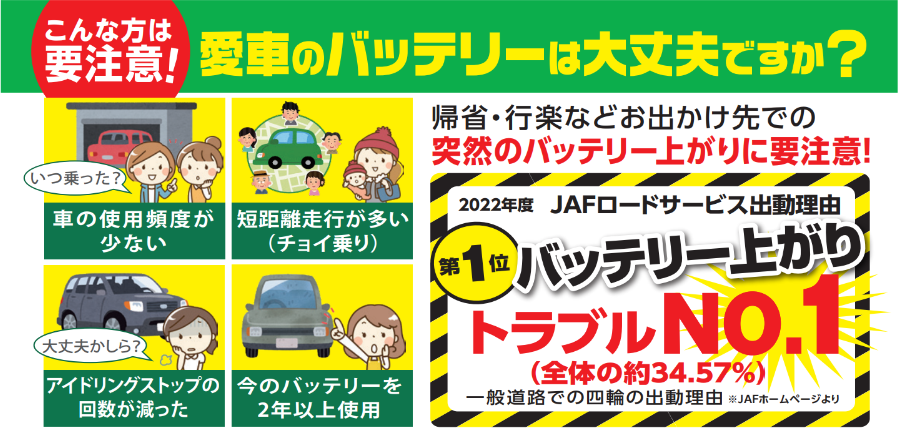 タイヤ館ではバッテリー交換も行っております。