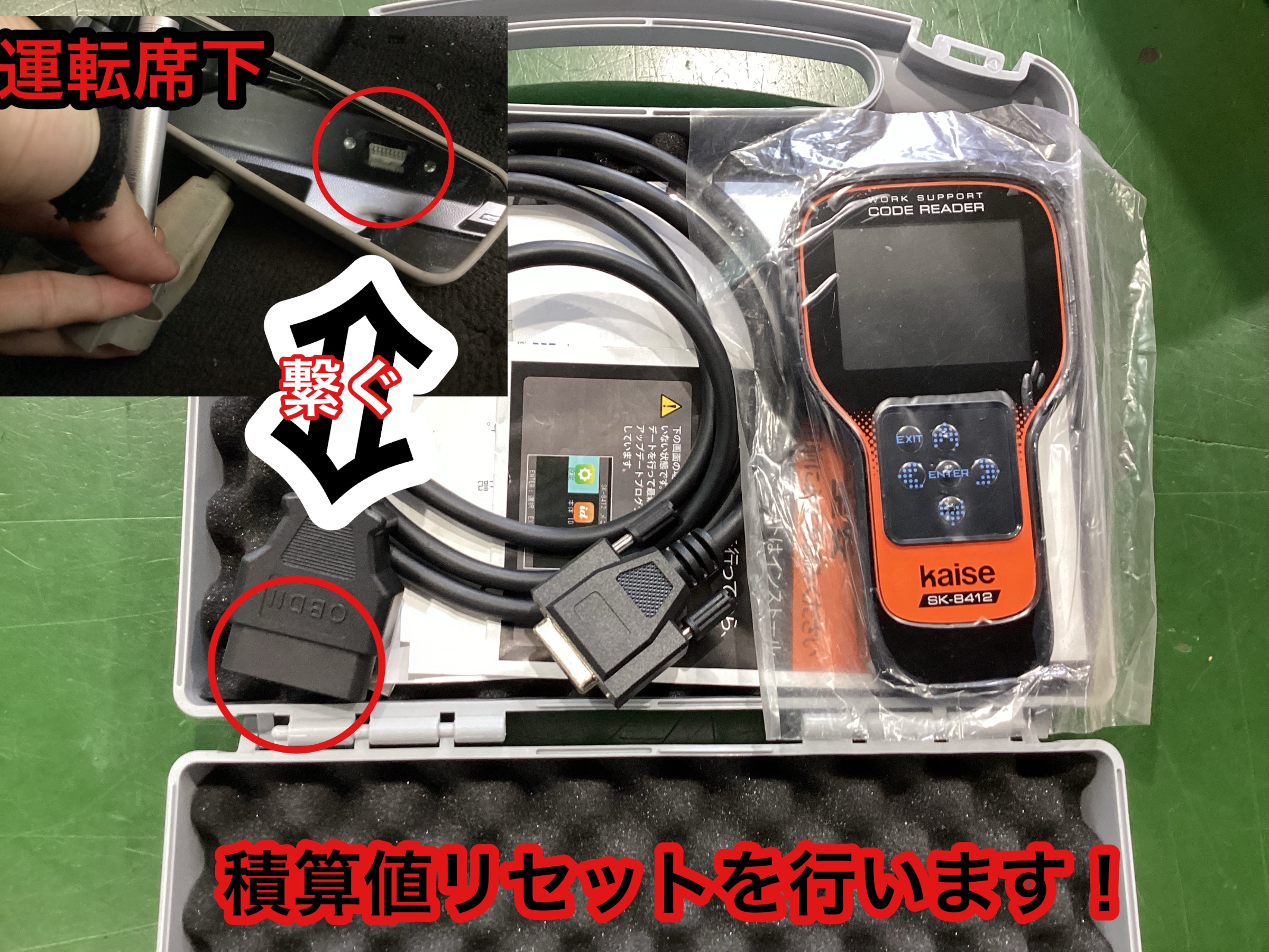 最後にOBD2端子にスキャンツールを接続して積算値リセットを行います!