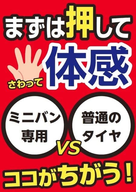 ミニバン専用タイヤと普通のタイヤの違い!! ポスト 2016年5月4日 ミニバン専用タイヤと、普通のタイヤの違いはご存知ですか?タイヤを押してもらうと、よく分かります。是非店頭でお客様の手で押してみて、実感してみて下さい。タイヤ交換なら、タイヤ館所沢へ!!ご来店お待ちしております