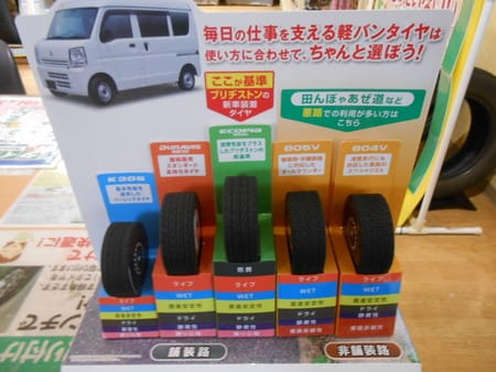 ブリヂストンの軽バンタイヤ ポスト 2016年7月9日 皆様、毎日暑い日が続きますね~本日はブリヂストンの軽バンタイヤのご紹介です。軽バンタイヤでも、ご覧の通り意外と種類があります。お車の使い方により、お選びすることができます。街乗りメインであれば、オススメは燃費に優れたエコピアR680です。タイヤ交換なら、タイヤ館所沢へ!! ご来店お待ちしております。 担当:川井