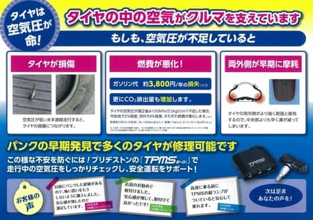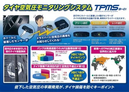 スペアレス車両に、タイヤモニタリングシステム(TPMS)オススメ!!