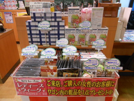 女性のお客様に、お買得商品や、プレゼントの粗品をご用意して