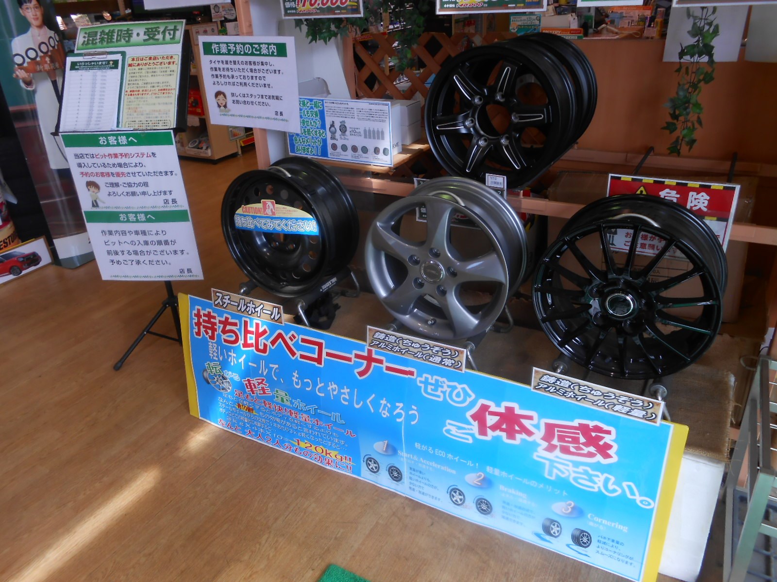 ホイール持ち比べ!! ポスト 2017年4月2日 ホイールによって、重さがかなり違います。 重さが違うと、走行性能、燃費性能、乗り心地が変わってきます。 当店では、ホイールの持ち比べコーナーがありますので、 重さの違いが、よく分かります。 是非、体感していただいて、 軽いホイールに交換してみて下さい。 担当:久保