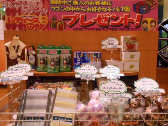 明日よりレディースウィーク!! ポスト 2017年10月31日 毎月1日~7日まで、 「レディースウィーク」を開催しております。 ご来店の女性のお客様に、 商品をご購入していただいた際には、 もれなく、プレゼントを差し上げております。 かごの中から、1品お好きな物を選べますので、 ご来店お待ちしております。 担当:久保