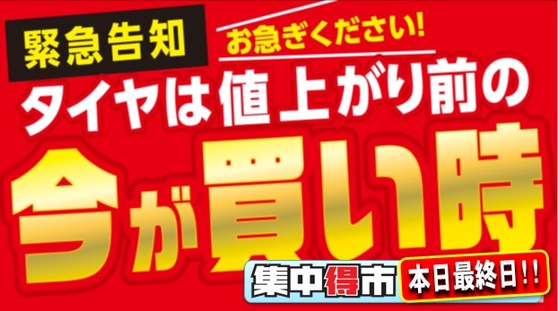 値上げ前の「集中得市」本日最終日!!