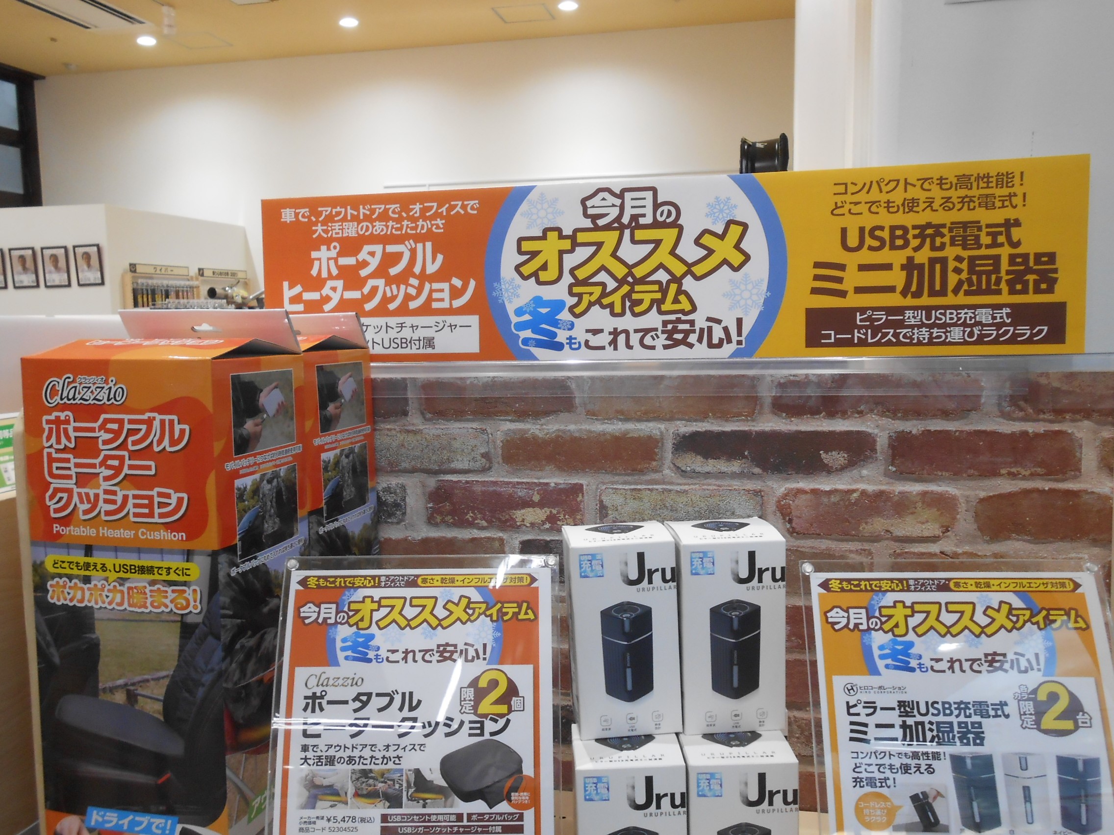 左側【ポータブルヒータークッション】と右側【ピラー型ミニ加湿器】です!!