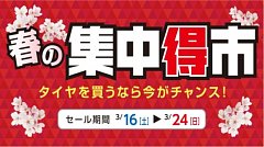 こんにちは。こんばんは。タイヤ館 所沢店です。3月16日(土)より3月24日(日)まで、春の集中得市を開催中です!! いよいよ残り2日となりました。冬用タイヤから夏用タイヤへ履き替える時期がやって参りました。お取付けする夏用タイヤの状態は大丈夫でしょうか??セール期間中はお買い得価格と...