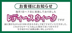 尚、毎週、火曜日と木曜日に開催しております レディースデイは 引き続き行っておりますので宜しくお願い致します。