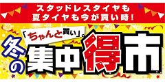 当店では明日12月26日まで、冬の「集中得市」を開催中です。 スタッドレスタイヤも夏タイヤも今がお買い求めのチャンス!! 皆様のご利用お待ちしております。