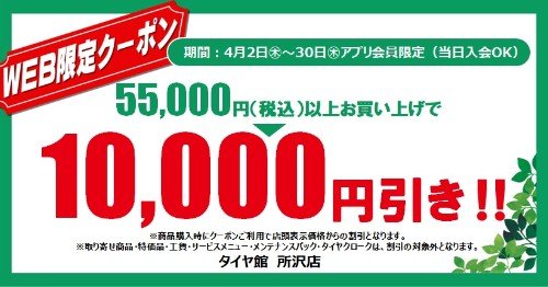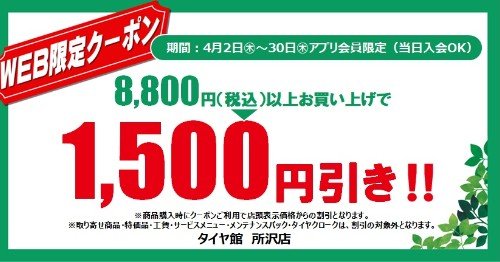 こちらのクーポン券は、タイヤ館所沢店のみ有効となります。