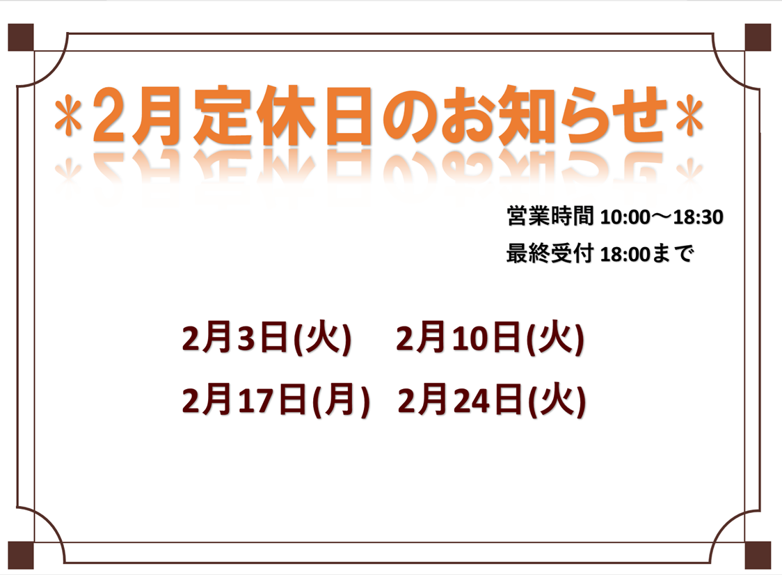 本日火曜日は定休日です!!
