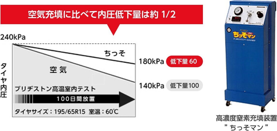 アフターフォローとして空気圧の点検および窒素ガスによる補充を無料実施しています。