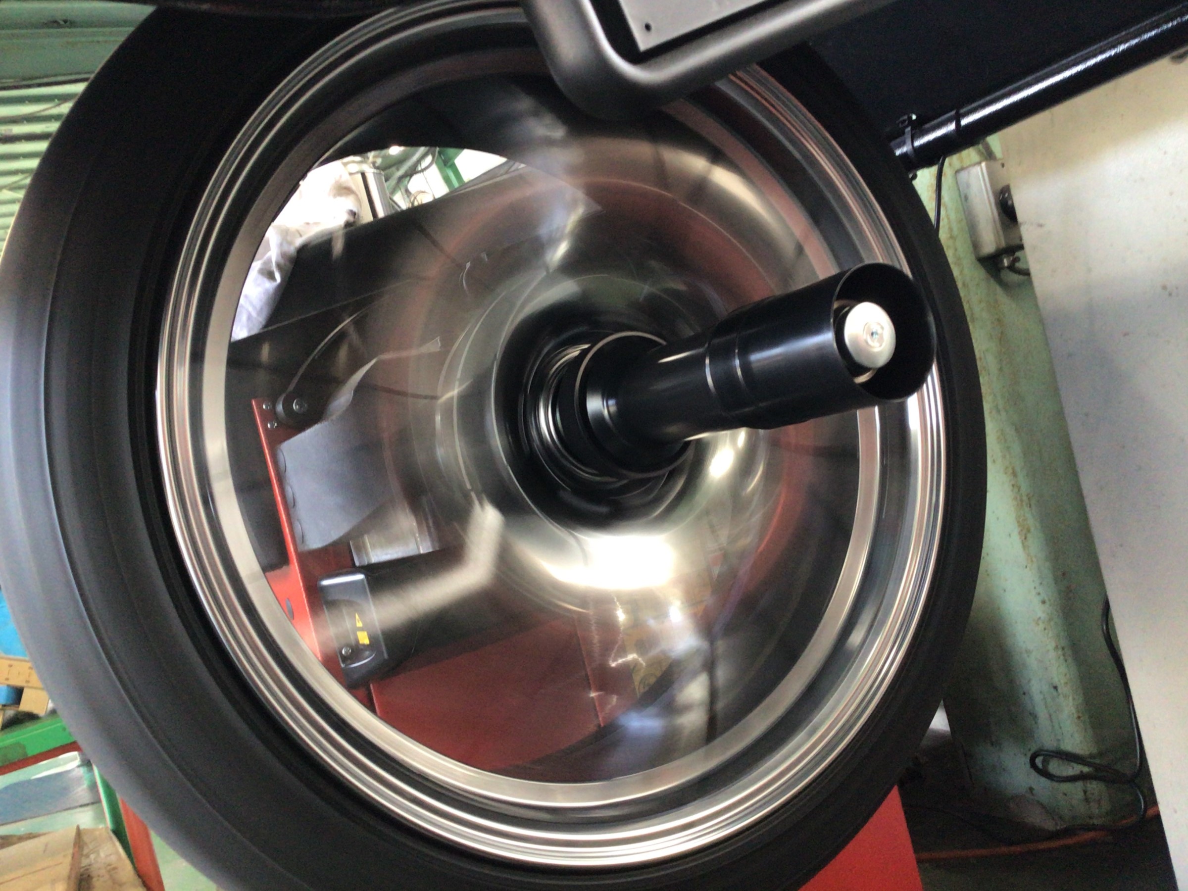 タイヤ・ホイールのバランス調整は、このタイヤバランサーにて行います!