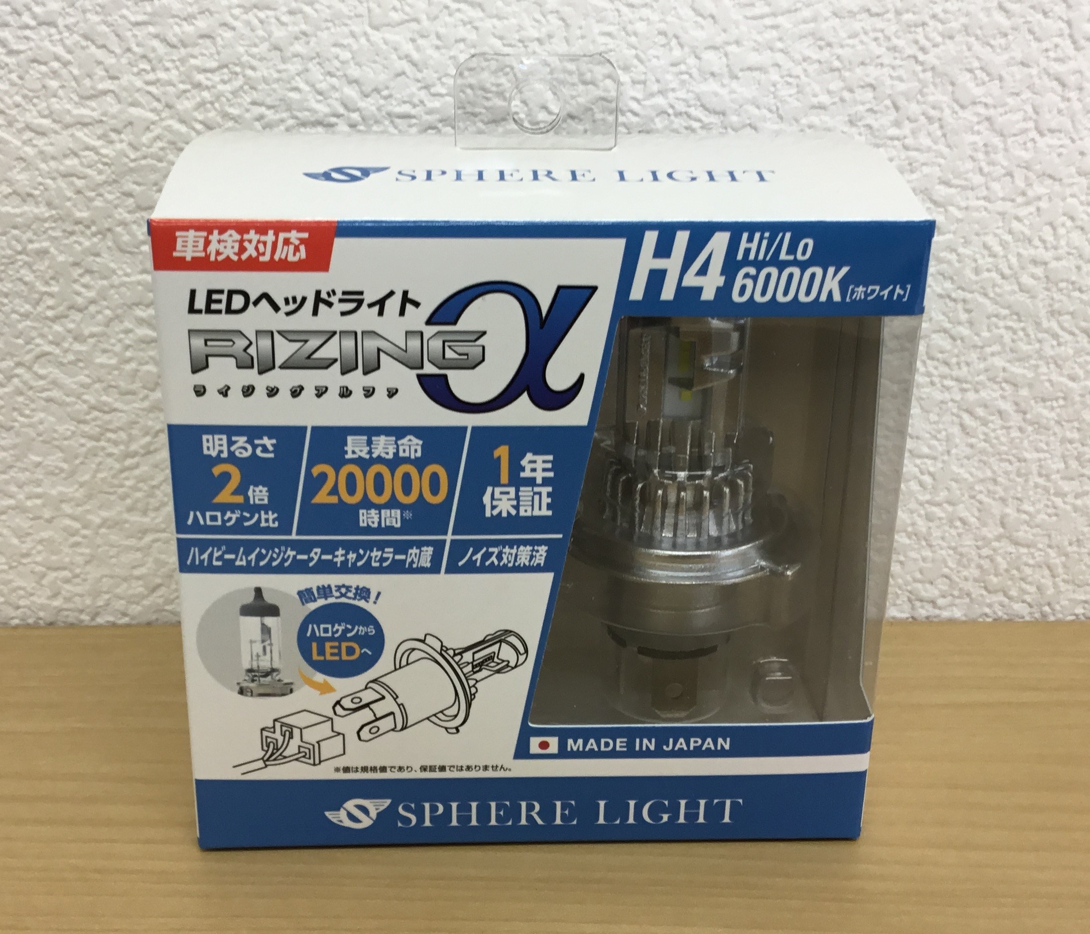 ★スフィアライト LEDヘッドライト★タントに取り付け ポスト 2020年12月18日 スフィアライト LEDヘッドライト 『ライジングα』 H4ハロゲンヘッドライトバルブと交換するだけで視界が明るくなります!! 本体はこんな形状をしています。 ハロゲンの約2倍の明るさがあり、6000Kと白い光で見やすくなっております。 担当:ただ
