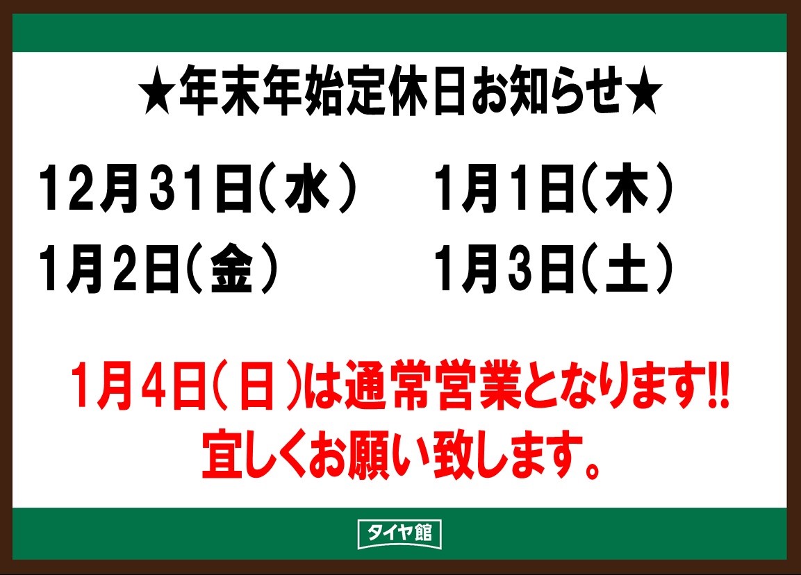 年末年始 休業日のご案内