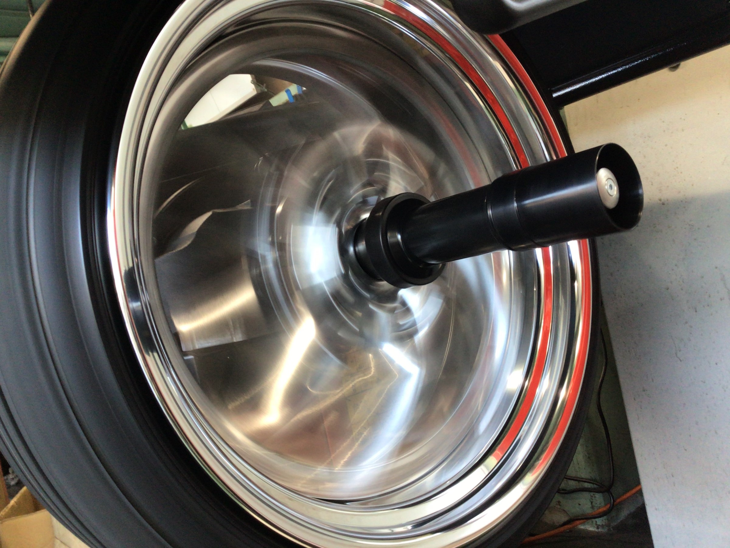 タイヤとホイールの重い所・軽い所を測定して、重量バランスを整えます。
