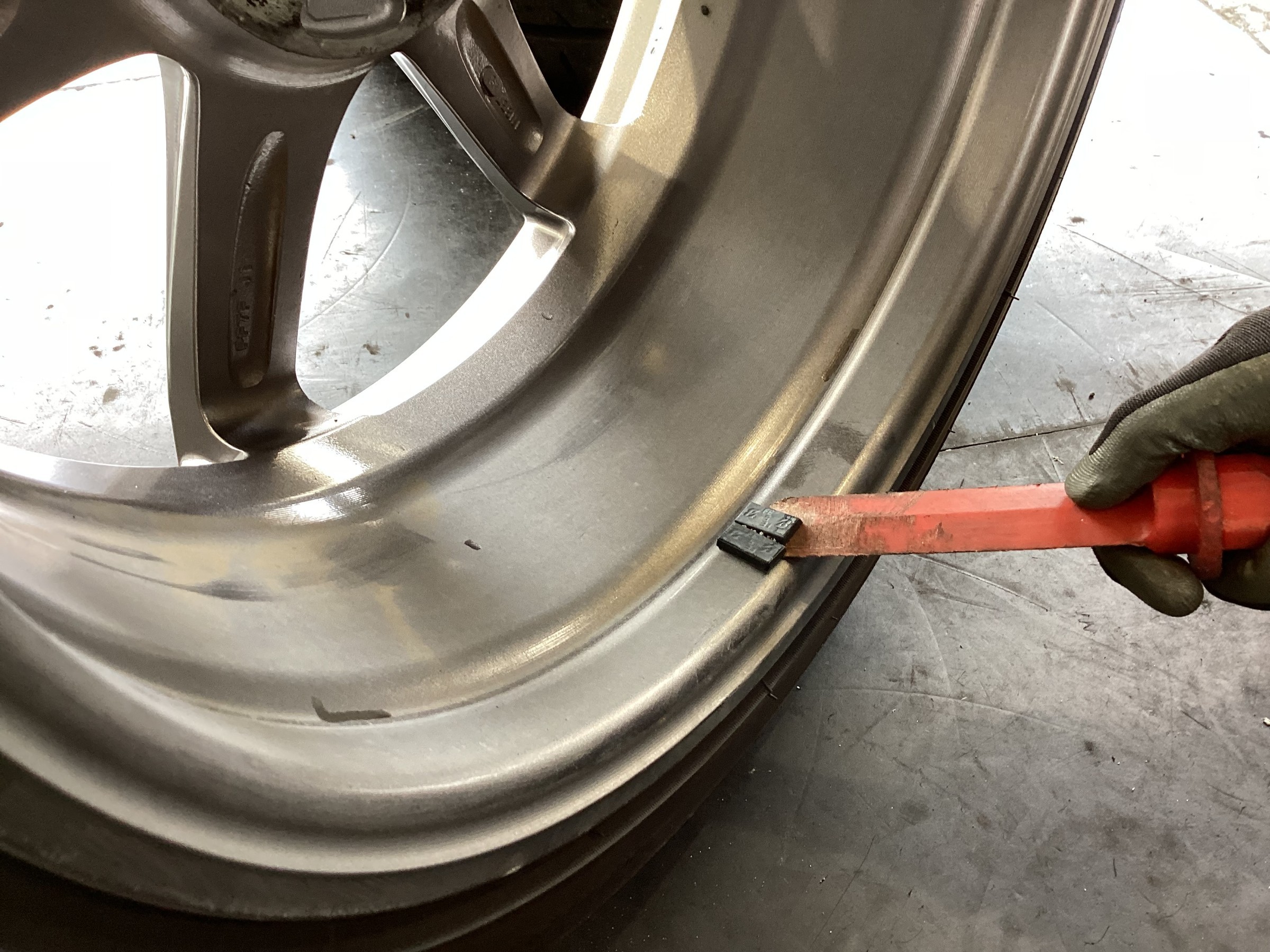 2.専用の工具でウエイトのノリを剥がします