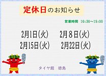 ~2月定休日のお知らせ~