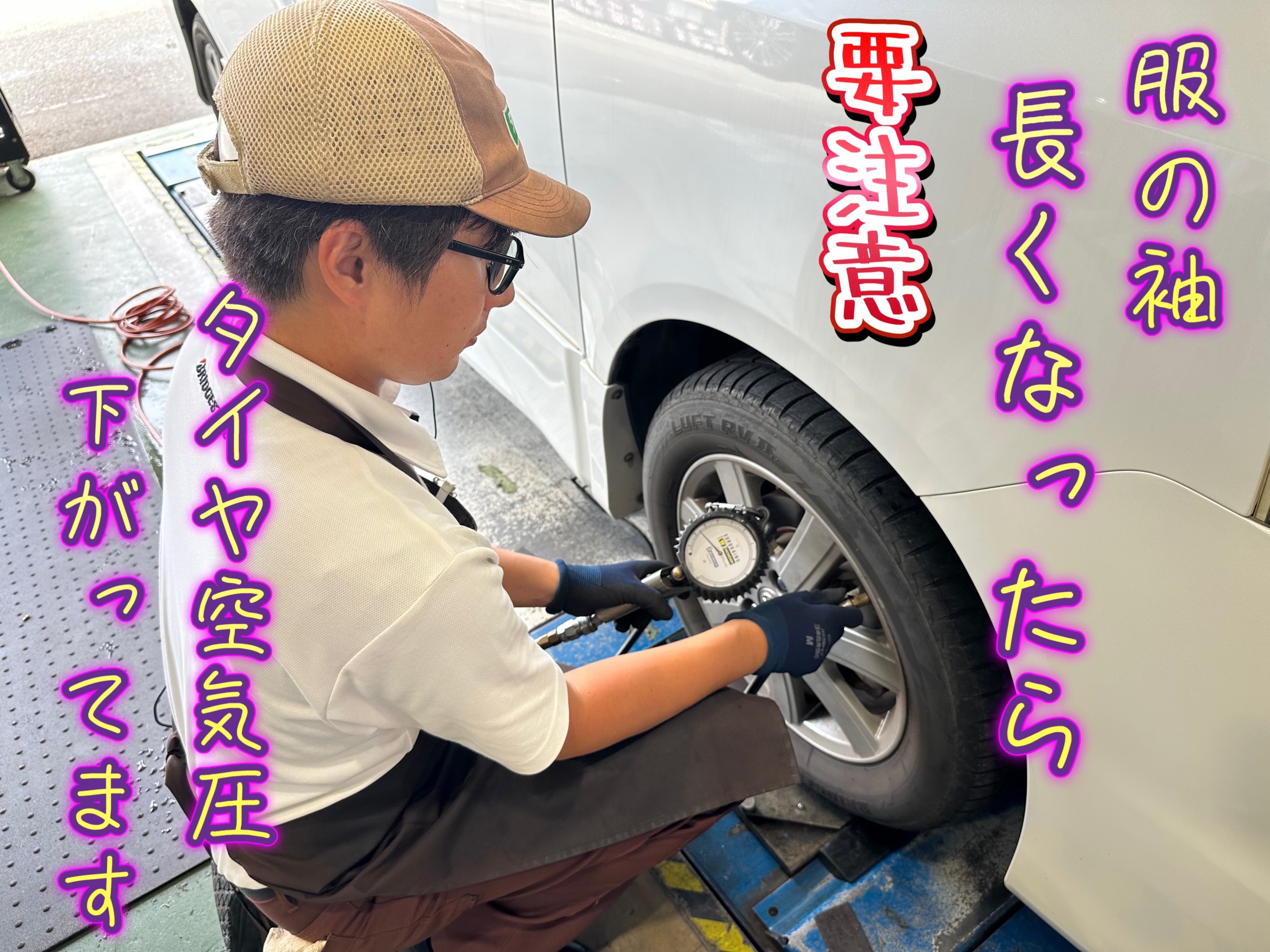 【注意】気温が下がると空気圧は下がります!無料点検実施中!安全のためにも空気圧のチェックにご来店ください!