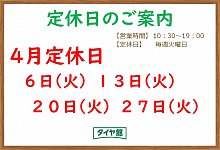 4月の定休日のお知らせ