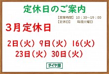 2021年3月の定休日のお知らせ