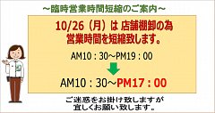 10/26(月)営業時間変更のお知らせ