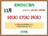 11月 定休日のお知らせ