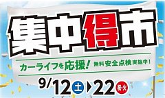 9月12日から開催しております 【集中得市】 早いもので明後日9月22日(火)が最終日となります!! ただ今当店では 【SUVタイヤ or REGNO】を4本ご成約の方に お気持ちですが、プレゼントをご用意しております♪ また【冬の大抽選会】も開催中です♪ アンケートをお答え頂いた方に、抽選で豪華景品が当た...