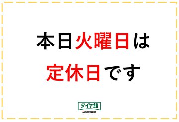 本日火曜日は定休日です。 お間違えのないようお願い致します。 自宅でもタイヤのご購入ができます♪