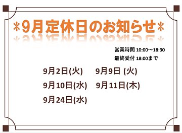 いつもタイヤ館徳島店をご利用いただき 本当に有難うございます。 誠に勝手ながら 9月の定休日は毎週火曜日とさせていただきます。 9月23日(火)は営業します!! ※9月10日(水)~9月11日(木)・9月24日(水)はお休みです。 定休日でも ご自宅からタイヤをご購入頂けます! 詳しくは↓↓↓をチェック(^^)v ...